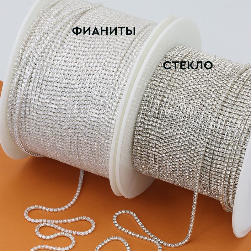 Стразовая цепь с фианитами 1,7 мм Crystal\silver